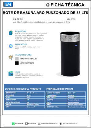 El Bote de basura aro punzonado de 38 litros de acero inoxidable es la solución ideal para oficinas, baños, áreas comerciales, clínicas y espacios institucionales donde la presentación, la higiene y el diseño moderno son prioridad. Su tamaño cilíndrico vertical (29 x 29 x 63 cm, 3 kg) se adapta perfectamente a esquinas, escritorios, sanitarios y estaciones de reciclaje, permitiendo una disposición eficiente de residuos reciclables y papelería.