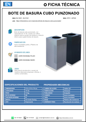 Contenedor para desperdicios cubo punzonado