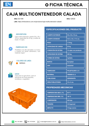 La Caja Multicontenedor calada es indispensable para quienes buscan eficiencia, frescura y durabilidad en procesos logísticos, agrícolas, comerciales o industriales con entrega nacional rápida.
