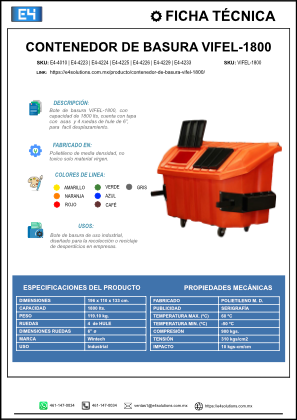 Diseñadas para empresas con capacidad de 1800 lts, soporte laterales vaciado automático, además podemos fabricarlo en cualquier color.
