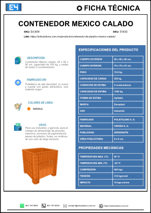 Apuesta por un contenedor apilable, robusto y ecológico (100% reciclable), optimizando tu operación con el México calado de 380 lts, calidad y eficiencia para procesos de alto volumen y manejo profesional.