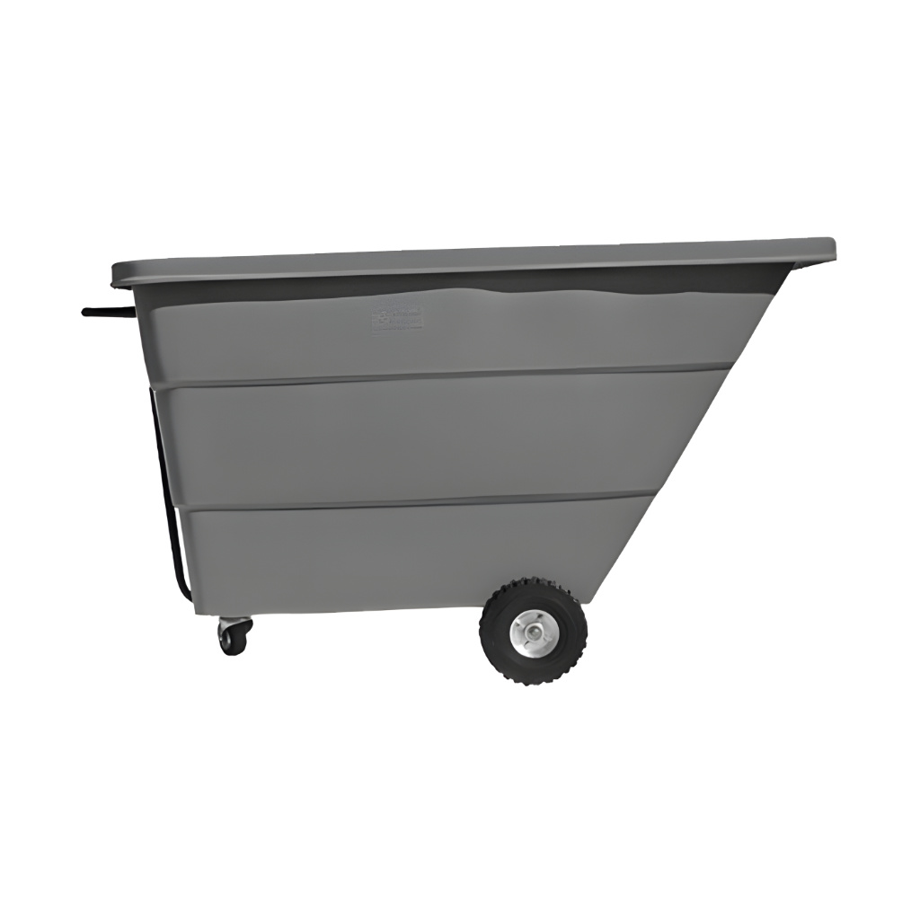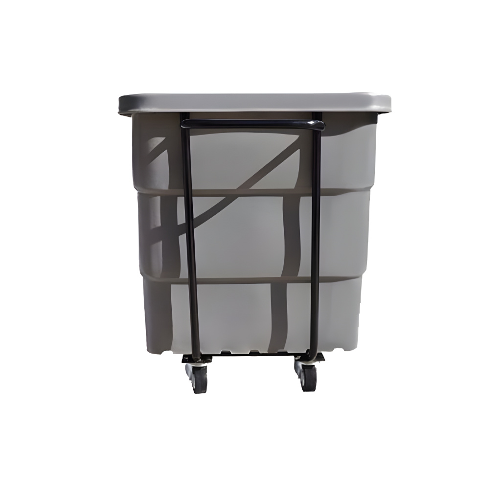 Su diseño monobloque sin juntas ni costuras elimina los puntos débiles y extiende la vida útil, mientras que su estructura tubular metálica reforzada y las cuatro ruedas (dos tipo tractor de 10" y dos giratorias de 4”) proporcionan movilidad total y facilitan el desplazamiento en patios industriales, almacenes y áreas comerciales. El vaciado frontal inclinado permite descargar el contenido de manera rápida, sencilla y ergonómica, optimizando el flujo de trabajo y reduciendo al mínimo el esfuerzo físico del personal.