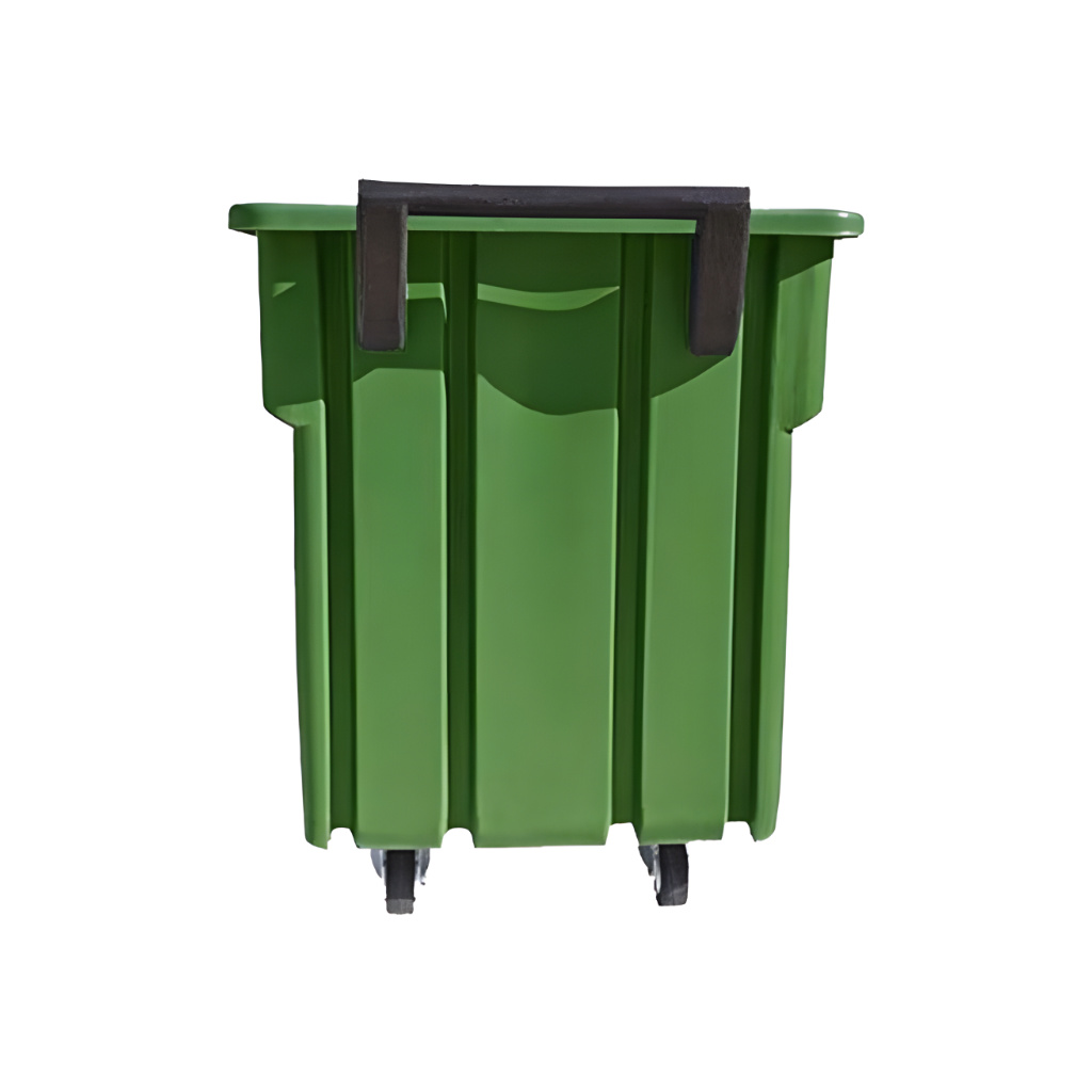 Contenedor Volquete 750: de 750 lts, diseño inclinado, polietileno, limpieza sencilla y ruedas robustas. Movilidad, capacidad y seguridad para industria, hoteles, hospitales y fábricas.