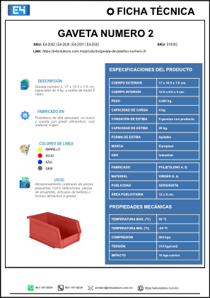 Rentable y ecológica, la Gaveta de plástico número 2 es 100% reciclable, ayudando a cumplir metas de sustentabilidad de tu empresa. Su entrega rápida y su durabilidad comprobada la convierten en la mejor inversión para quienes buscan eficiencia, orden y seguridad en el almacenamiento de productos pequeños y de alto movimiento.