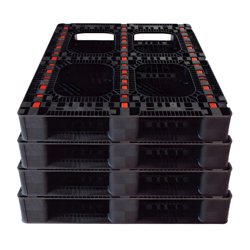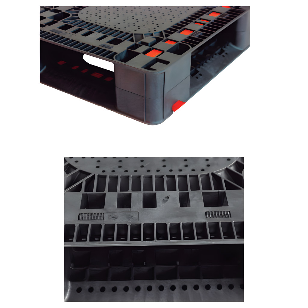 Su diseño robusto e inyectado con ángulos reforzados está pensado para ambientes rudos, almacenes con alto tránsito y racks de múltiples niveles. El material reciclado no solo minimiza el impacto ambiental y el costo, sino que conserva propiedades mecánicas excepcionales —resistencia al impacto, estabilidad bajo peso y máxima durabilidad (vida útil de 2 a 3 años)—. Es inmune a plagas, humedad, corrosión o químicos, y requiere mucho menos mantenimiento que las tarimas de madera, lo que asegura un retorno de inversión superior.