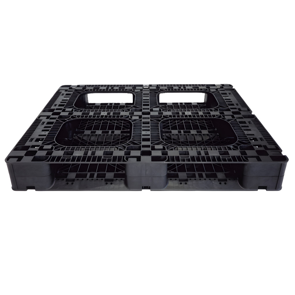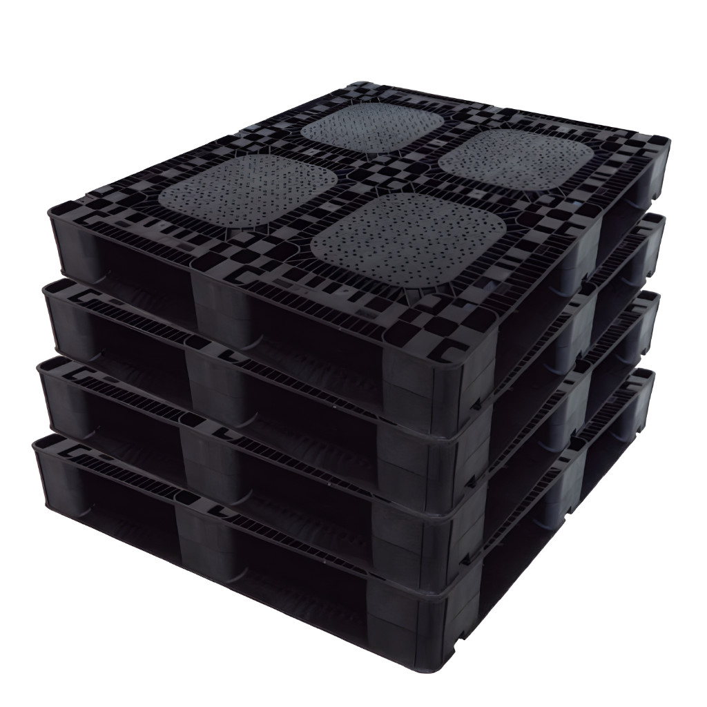 Pallet de plástico Medium Duty negro 120 x 100 x 15 cm, superficie antiderrapante, capacidad 10,000 kg estática y 2,000 kg dinámica.